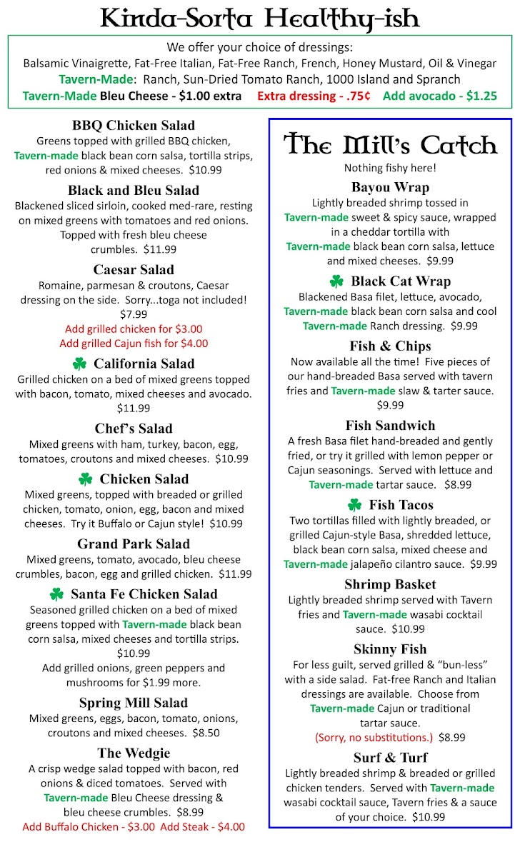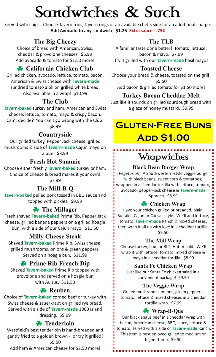 Welcome to The Mill Tavern, a vibrant eatery located at 226 W 161st St in Westfield, IN. This lively bar and grill offers a menu that delightfully balances comfort food with healthy options. Start your meal with a refreshing BBQ Chicken Salad, featuring grilled chicken topped with zesty black bean corn salsa. If you’re in the mood for something heartier, the California Chicken Club delivers with its juicy grilled chicken and creamy avocado layered on grilled bread.